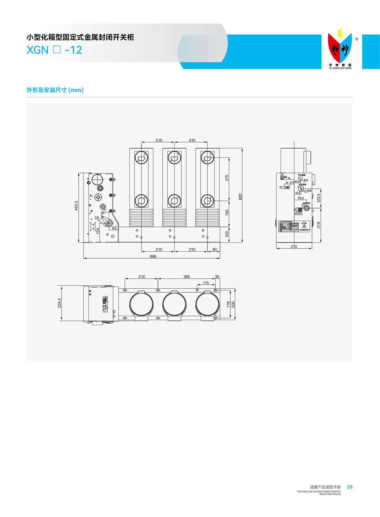 XGN口-12小型化箱型固定式金属封闭开关柜是本公司自主研发生产的集智能化、环保型、结构紧的新一代小型化专利产品。产品尺寸:宽450(500)x深1000x高1800(mm)。本产品适用于环网供电单元、发电厂、变电使用。特别适用于工矿企业、住宅小区、学校、高层建筑等场所的配电的控制与保护:能满足变电所、箱式变电站、开闭所和电缆分接箱等成套产品的配电自动化及其它要求。